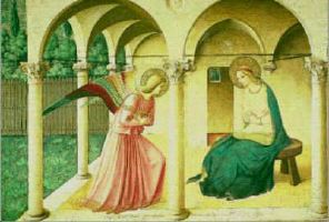 Fra Angelico: La Anunciación. c. 1440-50. Fresco. S. Marco, Florencia. |