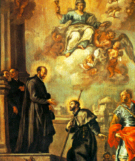 San Ignacio de Loyola enviando a San Francisco Xavier a la India Cuadro del siglo XVII, al estilo del Hermano Pozzo, S.I. |